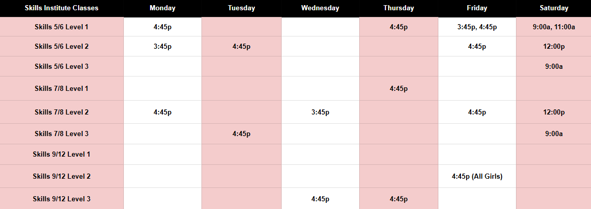 Class times have changed! Please call us to check availability.